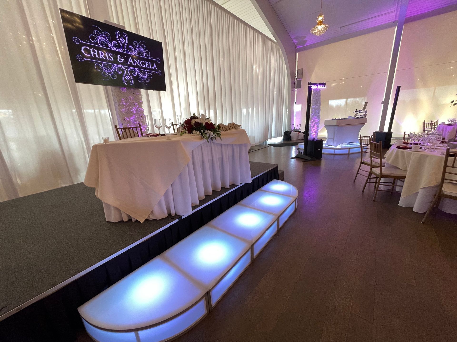 We installed our custom-designed wireless and sound-active light show, paired with our award-winning DJ Entertainment and GIANT Music Video Screen. Would you like to see the Party Trailer? Just give us a call!
